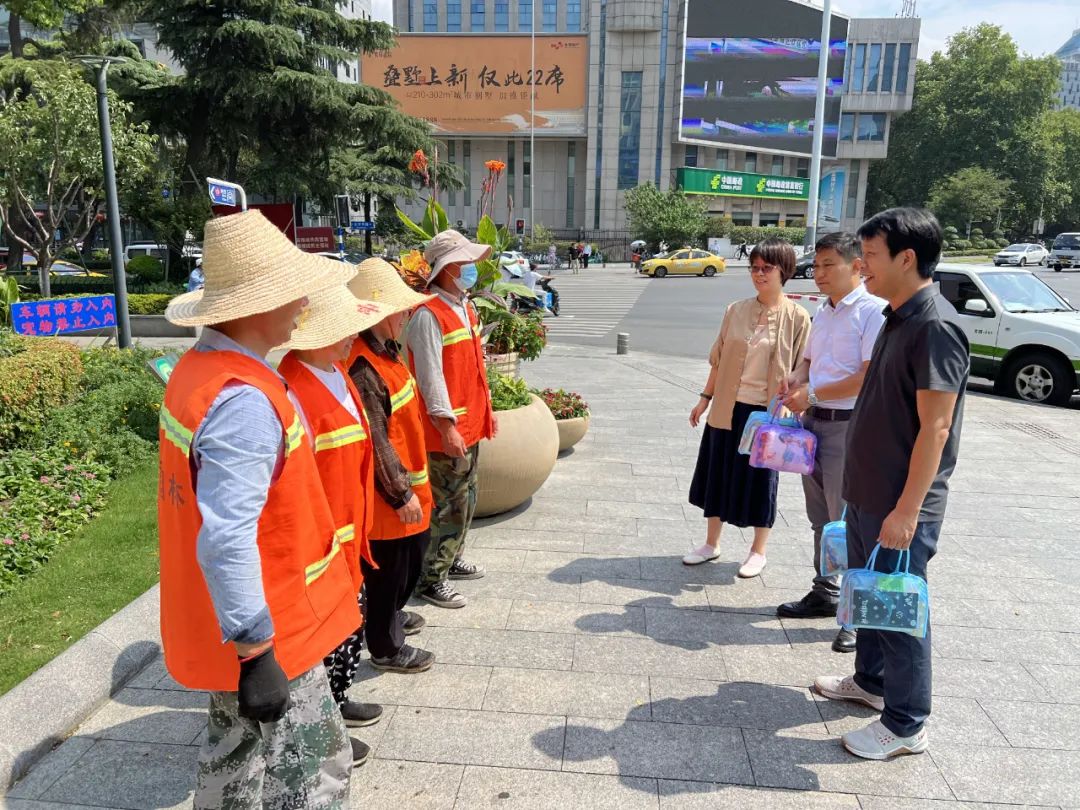 今年夏天,南京市氣象局接連發(fā)布高溫預(yù)警,為切實保障一線職工安全健康,確??崾钐鞖庀赂黜椆ぷ靼踩_展,7月18日上午,區(qū)總工會、集團黨支部、工會領(lǐng)導(dǎo)在浮橋南廣場慰問了高溫下堅守在一線的園林班組,對他們頂烈日、戰(zhàn)高溫的吃苦耐勞精神表示關(guān)心和感謝。